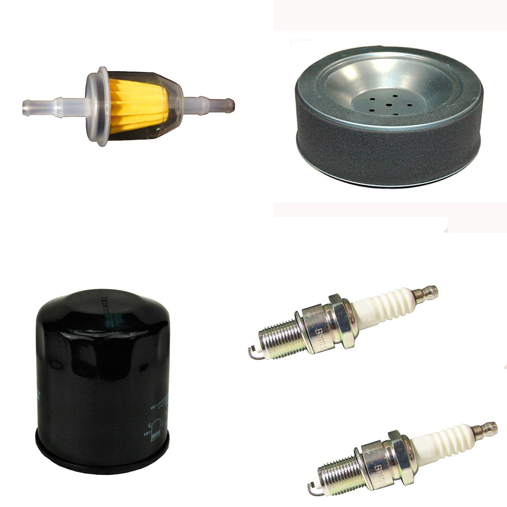 Kit Contains: (1) Air & Pre-Filter, (1) Fuel Filter, (1) Lube Filter, (2) Spark Plug