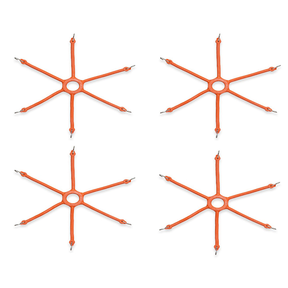 Quantity: (4) Fits Rim Sizes: 18"-25" (460mm-540mm) Orange with 6 Rubber Bungee Cords Rubber Spider type adjuster These help pull the slack out of the chain and spreads evenly toward center of hub. These work with both cable and link tire chains, and can increase the chains life by up to 25%.Reference Numbers:
