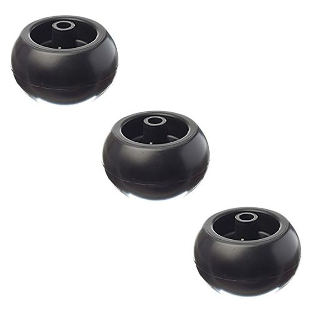 Quantity: (3) Bearing Type: None, Center Hole: 5/8", Hub: 2-1/2" - Offset Hub Type, Style: Deck Wheel, Tread Pattern: Smooth, Wheel Color: BlackReference Numbers: