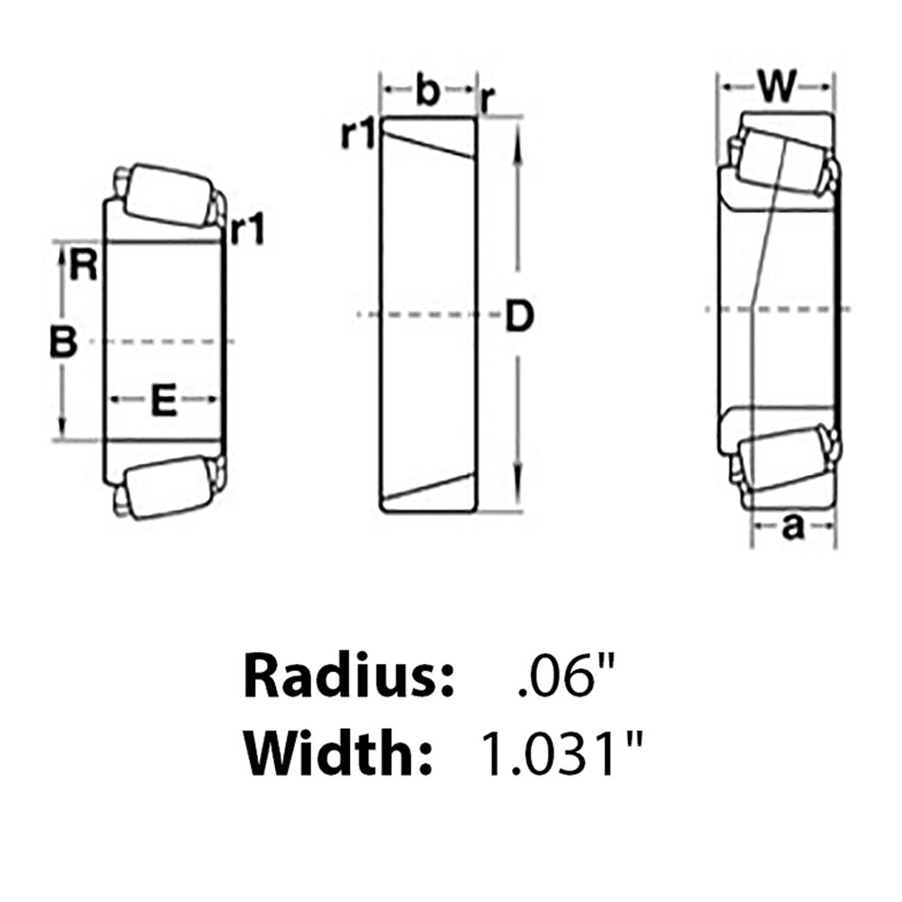 833124M1 Universal Fit Tapered Roller Bearing Cone 1.5" Bore 0.06" Radius