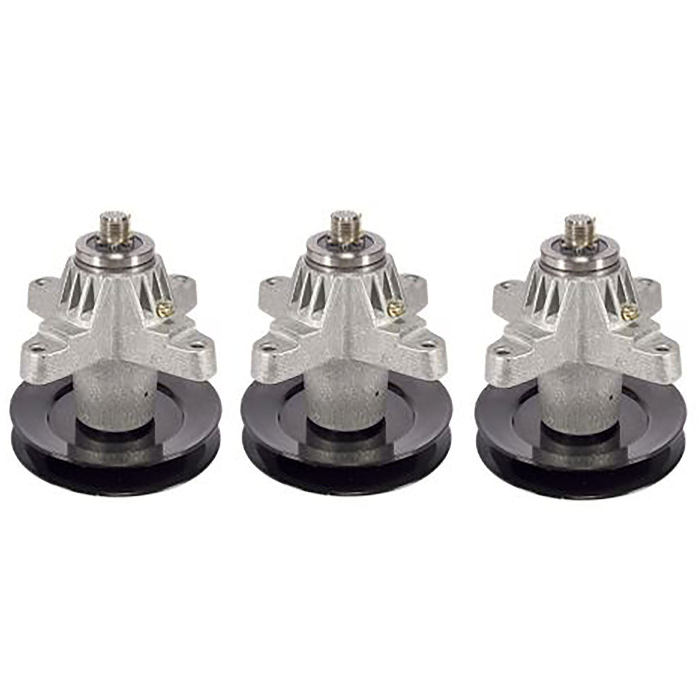 Kit Contains: (3) Spindle Assembly "H" pattern center hole. 6-1/8" Height 5-1/2" Pulley Diameter 6PT. STAR DESIGN Center Hole Replaces Part Number(s): 618-04125, 618-04125A, 618-04125B, 618-04125C, 618-04126, 618-04126A, 918-04125, 918-04125B, 918-04125C, 918-04126, 918-04126A, 918-04126B (1) Belt 1/2" x 134" Made With Aramid Cord Replaces Part Number(s): 754-04044, 754-04044A, 954-04044, 954-04044A (3) 2-in-1 Mower Blade Length: 17-7/8" Center Hole: 6 pt. star Width: 2-1/2" Thickness: 0.149" Specially designed: to replace 6 pt. star center hole Replaces Part Number(s): 490-110-C123, 490-110-M126, 742-04053, 742-04053A, 742-04053B, 742-04053C, 742-04056, 742-04056A, 742-04056A-0637, 742-04056B, 742-04056B-0637, 742-04056C, 742-04056C-0637, 942-04053, 942-04053A, 942-04053B, 942-04053C, 942-04053H, 942-04056, 942-04056A, 942-04056C, OCC-742-04053, OEM-742-04053Reference Numbers: