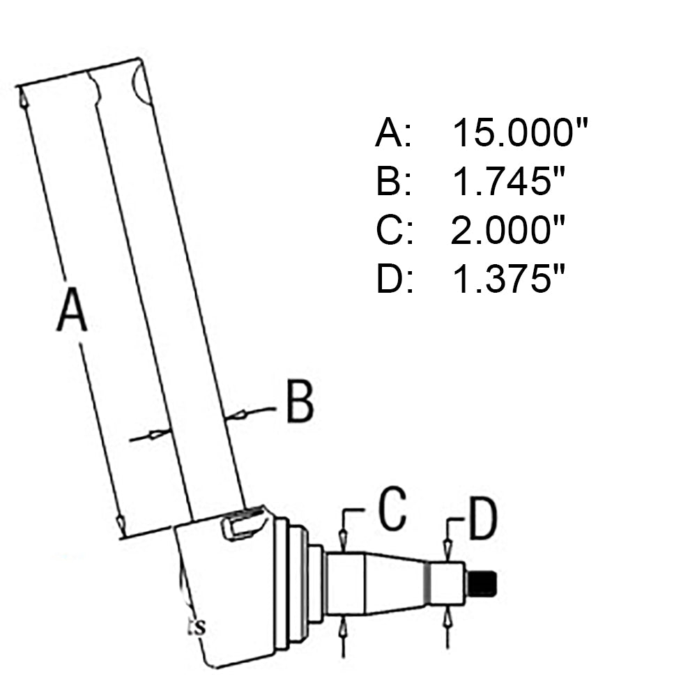 One New Aftermarket Replacement Left Hand Spindles that Fits Massey Ferguson Tractor models: 1100 (W/ SN 9B23680->), 1105, 1130 (W/ SN 9B23680->), 1135, 1150, 1155