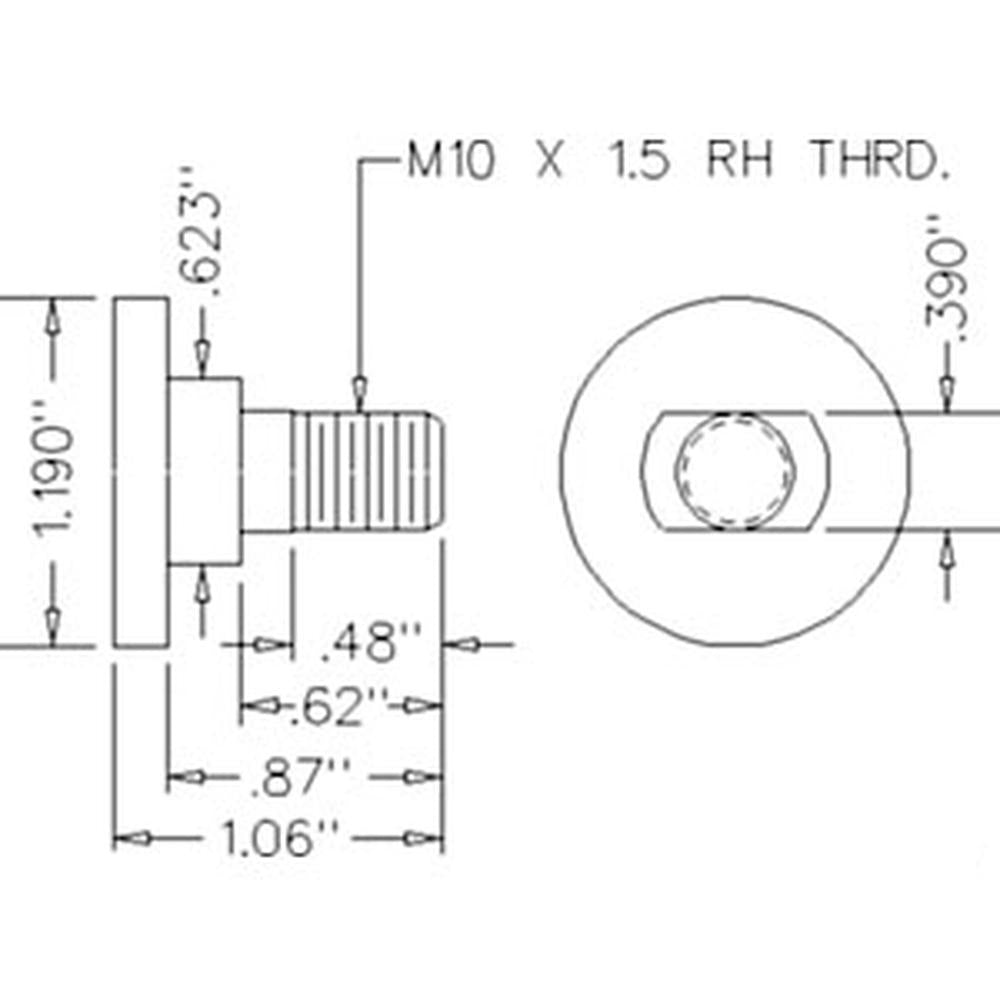Shoulder Diameter: .620" Shoulder Height: .3795" For .118" (3mm) Thick Blades. Bolt: 10mm X 22mm, 30mm round head, 9.5mm shoulder length, 15.9mm (5/8") shoulder diameter Nut with washer 10mm X 16mmReference Numbers: