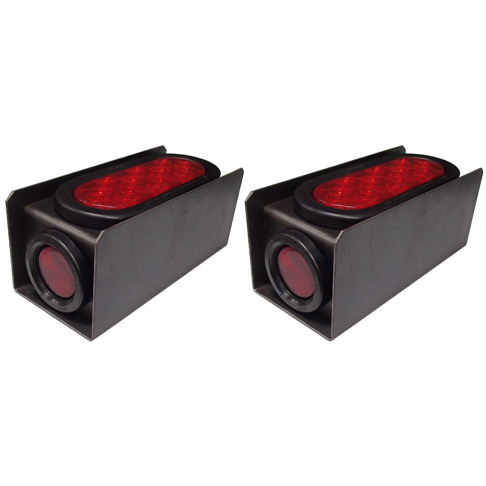 Two (2) 2" Red Round & 6" Red Oval Tail Light Steel Box Set