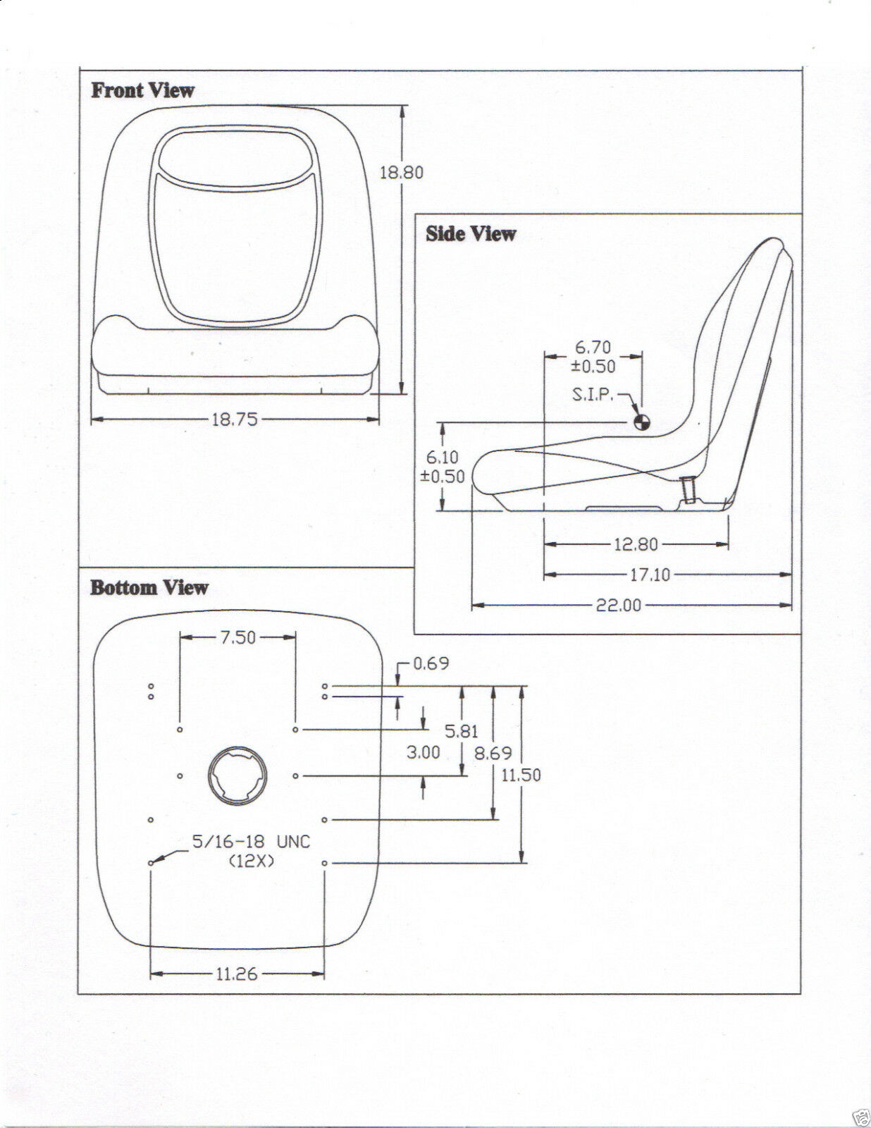 Includes Two (2) Uni Pro Bucket Seats Heavy-Duty Yellow Vinyl Covering Central Drain Hole Prevents Water Build-Up 19" High-Back Seat Which Will Replace Both Original 16" and 19" High-Back Seats Seat Dimensions: 18.75" x 18.8" (W x H) Multiple Mounting Patterns Uses Standard 5/16 18 UNC Bolts Accepts Twist in Mount Operator Presence SwitchReference Numbers: